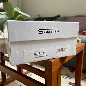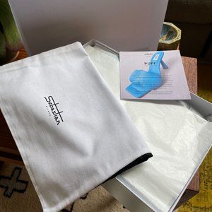 I'm selling a brand new pair of Sebastian Milano Puff Blast Mules in Sky Blue size 39EU. These were slightly big for my feet but I missed the return window! So they're in perfect condition, tried on only once on a cushy carpet. It's not that they aren't true to size - it's that I didn't think I could find a 38.5 and hoped the 39 would fit even though my feet are on the narrower side. If you are a true 39/9 or a slightly wide 8.5 these will fit! And I'm happy to report that I did actually find them half a size down. Can't wait to wear them this summer : ). - EDITED to add that I got to wear my size 38.5 in Greece recently and got a million compliments! See last pic ; )