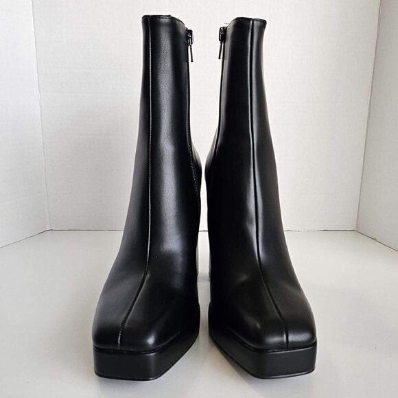 Set on a tall, slightly flared block heel, this square toe ankle boot is on-trend and chic.