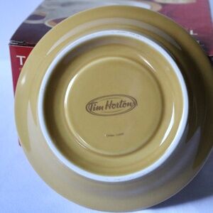 New, never used and still in original box, Tim Hortens cup and saucer set. This vintage cream and yellow set is from 2006 and features the Tim's "Always Fresh" logo. Pre-owned but never used and still in original packaging. Smoke-free, pet friendly home!