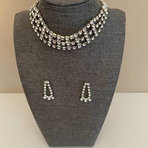 NIB Vintage Ivana Rhinestone Choker Necklace & Matching Earrings