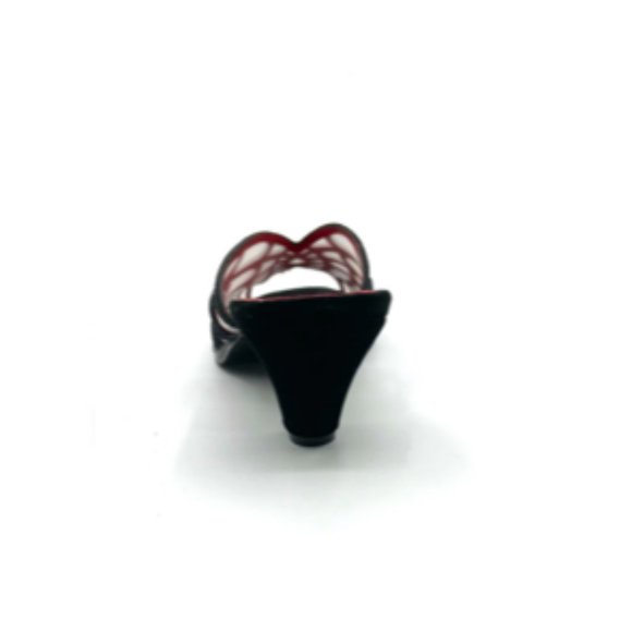 Black velvet laser-cut spider web detail strategically cradles your foot. Truly a vamp’s shoe dream come true.