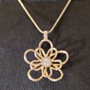 Beautiful necklace of 925 sterling silver and a flower with moonstone centre, made by Aurastella. Excellent quality. New. No flaws.