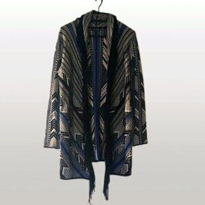 Women's cozy, soft knit, fluid, open cardigan - fringed front , shawl collar