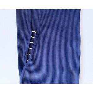 NICHOLAS Jules Rib Knit Cage Ring Hardware Dress Midnight Blue Size Large
