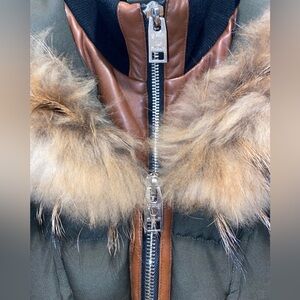 * Condition: very good condition, light signs of wear: the wear is situated particularly where rubbing occurs like underarms, inner cuffs etc (this rubbing wear is more on the fabric parts), light scuffs can be found on the leather sleeves that are very superficial, the inner leather cuffs hem is where most of wear is situated / the fur is in great condition, like new. This coat overall has been well maintained!
