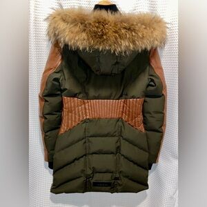 - Attached hood with genuine fox fur trim