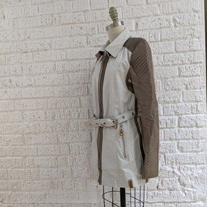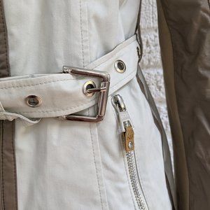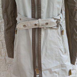 Hardly worn, but sadly two mystery stains. Hasn't been dry cleaned, so they may come out.