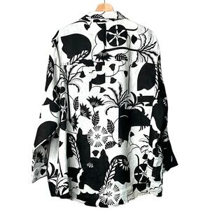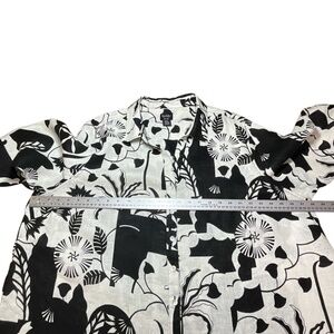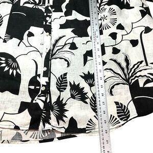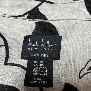 NICOLE MILLER 100% Linen Black & White Floral Print Roll Tab Sleeve Shirt Sz 3X
