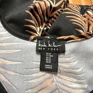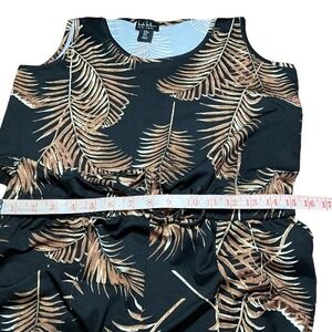 NICOLE MILLER Black w/ Brown Leaf Print Jumpsuit Elasticized Waist Side Pockets