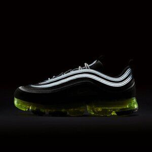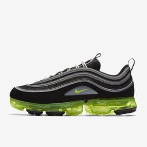 The Nike Air VaporMax 97 Neon, a bold fusion of style and performance. With its sleek black colorway, this shoe delivers a striking, eye-catching look. Featuring Nike's innovative VaporMax technology, you'll experience unparalleled cushioning and comfort. Whether you're hitting the gym or hitting the streets, the Nike Air VaporMax 97 Neon is designed to turn heads and keep you on top of your game.