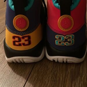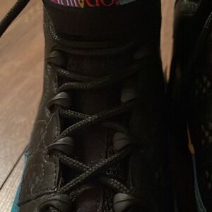 Worn once absolutely no scuffs or marks on them. Very cool. Size 7 men’s.multicolour black, turquoise, purple, red, orange and yellow.
