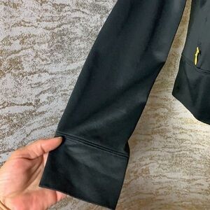 - Beautiful black jacket with white strap with zipper closure.2 side pockets style,very soft and lightweight jacket perfect for gym or walking or running out side