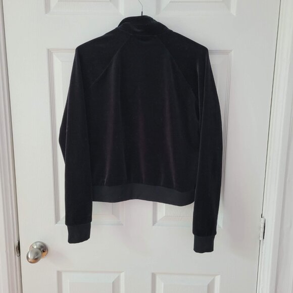 Women's cropped Nike sweatshirt in a stretchy soft black velour. White quarter zip and piping detail.