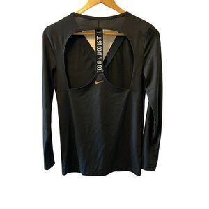 NIKE DRI FIT Black Lightweight Cut Out Workout Long Sleeve Top S