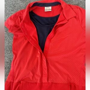 NIKE GOLF Dri-fit Dress Red Airflow Pinhole Fabric Lined Navy Blue Shell and Attached Shorts Snap Front Pockets Activewear Golf Tennis VFG