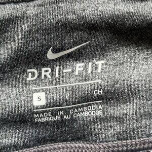 The capris are designed with a form-fitting silhouette, providing a supportive and streamlined fit. They feature a mid-rise waistband that sits comfortably on the hips and a cropped length that hits below the knee, allowing for a full range of motion. Additionally, the capris have a stretchy and breathable construction, ensuring optimal comfort and flexibility during your runs. The Nike Gray Dri-FIT Running Capris are an essential piece for runners seeking both performance and style.