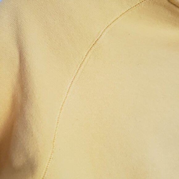 Vibrant yellow hoodie, size Small, in good condition. Minor stain on front right and a couple of tiny marks. Please check measurements for sizing. See photos.