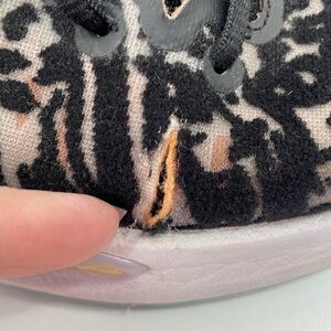 Please see photos each runner has a small tear near tel he front, they do have some all over wear but generally are in good condition with minimal wear to the sole .