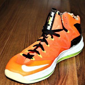 NIKE LEBRON JAMES FLYWIRE Mns 13 NEON ORANGE BASKETBALL HIGH TOP SNEAKERS SHOES.