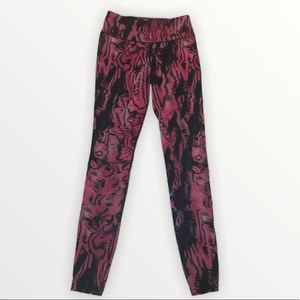 The wide waistband tilts up in the back to help prevent roll down when you’re bending and stretching.