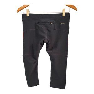 NIKE Navy Blue Running Crop Leggings Dri Fit Sz Med Orange Reflective Stripe