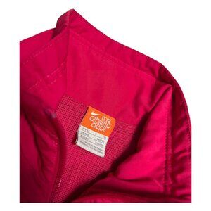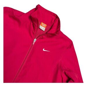 Elevate your outdoor and sports wardrobe with the Nike Lightweight Windbreaker Jacket. This bright pink women's small jacket delivers a blend of style and functionality, perfect for running, casual wear, or workwear. Its durable polyester outer shell ensures you stay protected against the elements, while the mid-length cut and full-zip design offer ease of movement and versatility.
