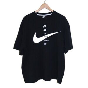 NIKE Swoosh Boyfriend Multi Logo Boxy T-shirt in Black/White - Size XL