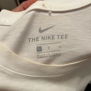 This limited NIKE tee is a unisex shirt that can be worn both for casual dress and workouts. It has somewhat of a loose to oversized fit. There are some makeup stains around be the collar and at the bottom of the shirt (worn only a few times eat but even afterr a couplele washes the stain are still a bit apparent), please see pictures above.