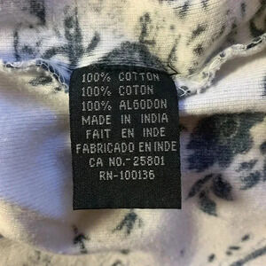 This T-shirt is done in a black and white crazyquilt pattern then embellished with beadwork and reflective sequins. Great way to elevate a black and white outfit. Made of 100% cotton, this piece can be worn all year long. The fabric is wrinkle resistant, so this will pack well. It has some nice two way horizontal stretch. Wash by hand, lay flat to dry. Measured flat The shoulders measure 3 1/2 inches The sleeves measure 5 1/2 inches Pit to pit measures 18 inches across Measured from the top of the shoulder, this T-shirt is 20 inches long From a smoke free and dog friendly home 🏡