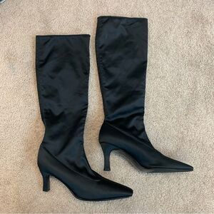 Nina Black satin finish soft stretch heeled boots Sz 8.5