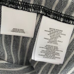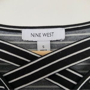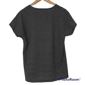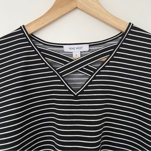 NINE WEST BLACK/WHITE STRIPED DOLMAN TSHIRT W/ CRISSCROSS NECKLINE DETAIL, S