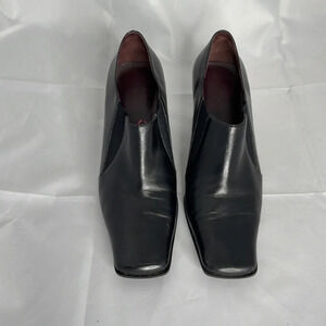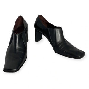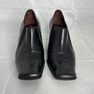 NINE WEST Black Square Toe Bootie Shoes Leather Heel High Vamp Witchy Size 7.5