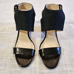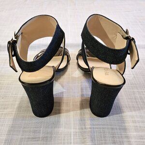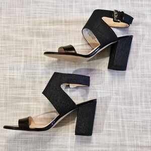 NINE WEST Brynlee Demin 4" Chunky Block Heel Open Toe Sandals Size 9