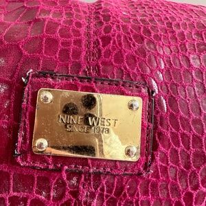 HOT PINK NINE WEST CROCODILE patterned handbag with bows on the sides ๐ (no crocs were harmed in the making of this bag) In flawless condition with 90s / Y2K Paris Hilton/Elle Woods vibes ๐ Measurements: 10โ deep 12โ wide 10โ to top of handles 1 zipped inside pocket 2 open inside pockets