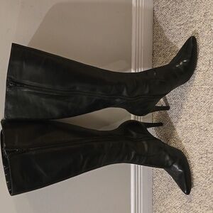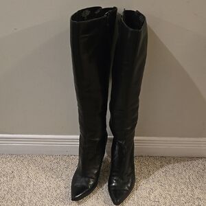 Step out in style with these elegant black knee-high boots. Perfect for any occasion, these boots offer both comfort and sophistication.