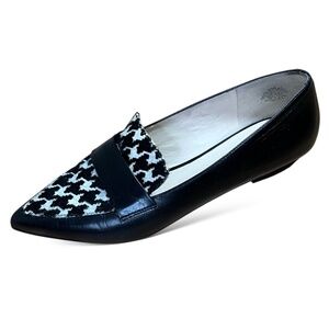 NINE WEST Genuine Leather Pointy Toe Flats Houndstooth Calf Hair Upper US Sz 8.5