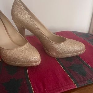 Beautiful light gold Nine West heels, perfect to dress up or with jeans. 4” heel with 1/2” platform, worn once . Size 6.5