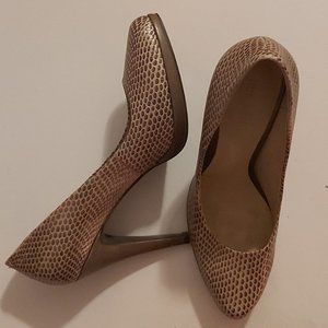 NINE WEST NWRocha Brown women's Snake Print Platform Heel Pump SIze 8 1/2