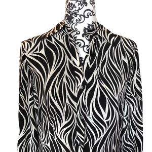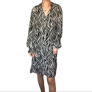 Nine West 100 percent SILK Zebra long-sleeve button-up Midi Dress