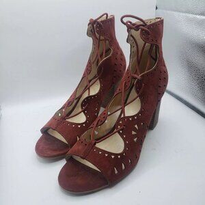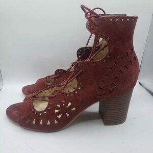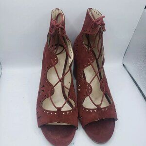 NINE WEST US sz 10M Burgundy Suede Leather GWENIAH Gladiator Lace Up Shoes