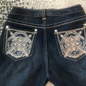 Large stitches on pockets and back with with pockets jeweled embellishments