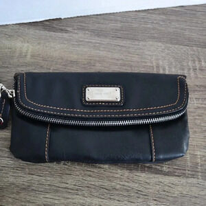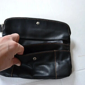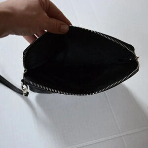 Size is about 8" x 5" and the wristlet portion is about 7" in length.