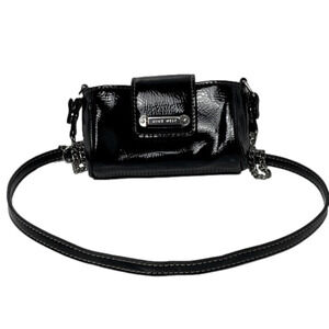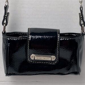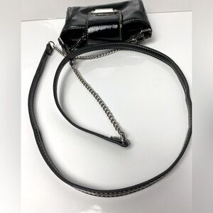 NINE West Cute Black Faux Patent Leather Mini Crossbody Long Detachable Strap