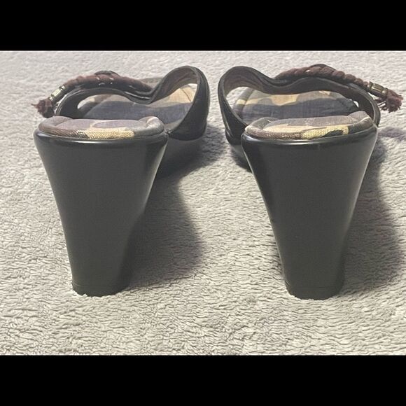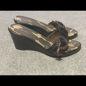 Nine West wedge slide sandals size 8 very good condition black and brown with fun camo footbed