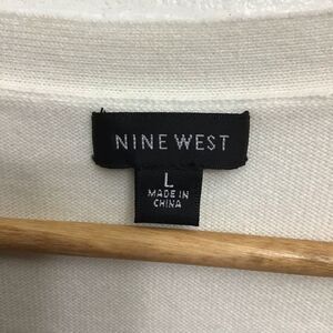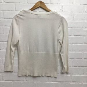 NINE west cream white cotton blend sweater embellishments petals details Large