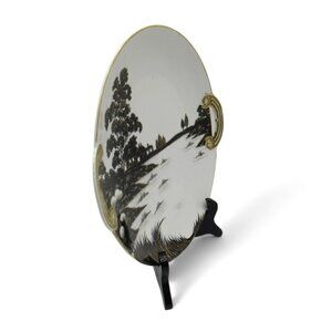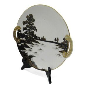 NIPPON Scenic Landscape Plate Black White with Gold Accented HANDLES 11" Vintage