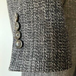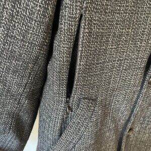 This is a fantastic lightweight coat with a slim cut that hits right around the knee, depending on your height. Can totally work for a shorter guy – and might be better for one, depending on your arm length: check the measurements! Depending on your body shape, you might be able to get a lightweight down jacket or vest underneath to push this into colder weather too. It's in excellent shape, with very minor pilling at the cuffs and no damage to the main lining. The stitching on the left cuff is coming apart and will need to be replaced eventually – this is only visible on close inspection for the time being. It's an easy home repair if you're handy with a needle – but I'm leaving it for now in case you plan to alter the sleeve length. Since there is very light wear to the cuffs, the sleeves may be able to be lengthened but I can't make any promises – you'd have to ask a tailor. Please let me know if you have any additional questions.