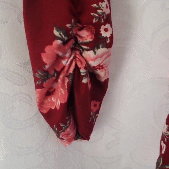 #503 No Boundaries Blouse Top Ladies Women's Burgandy Floral Lace Tie front Size XS