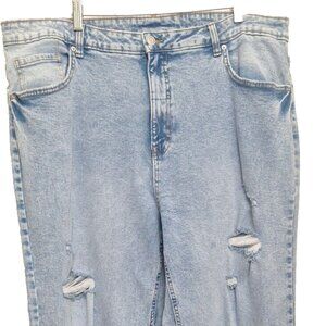 These NOBO high-rise jeans (20W) feature a soft light-wash blue and a relaxed straight leg fit with subtle distressing.