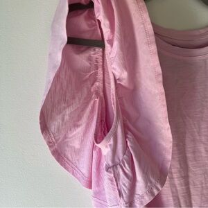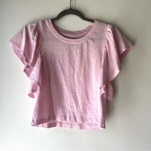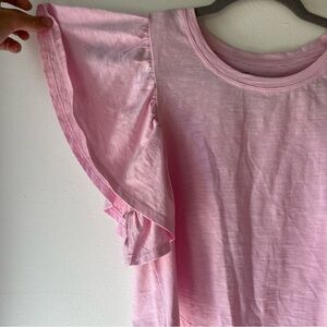 Soft and feminine pink flutter sleeve t-shirt by NOBO (No Boundaries), size Medium. Features ruffled sleeves, a subtle slub texture, and lightweight 100% cotton fabric. Easy to dress up or down — pair it with high-waisted jeans, skirts, or loungewear.